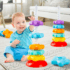 Crafted from safe, BPA-free materials, the toy is sturdy, smooth-edged, and perfect for little hands. Its vibrant colors capture attention and encourage cognitive development through sorting, color recognition, and size sequencing. The wide red suction base provides excellent stability during play, making it safe for floor or table use.