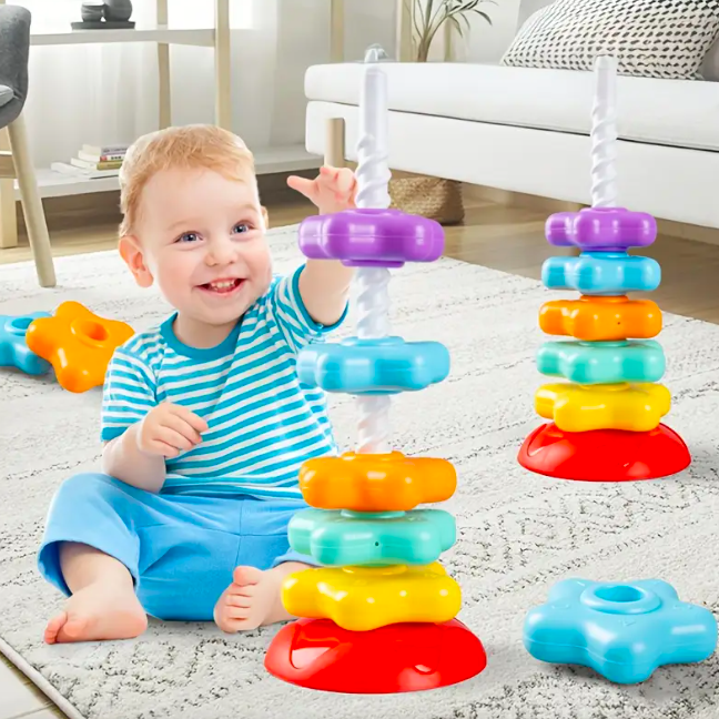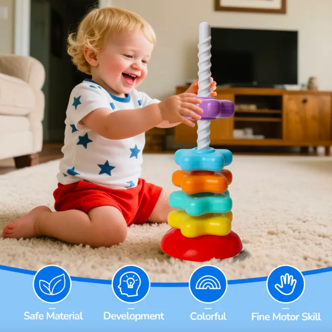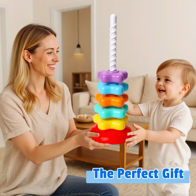 Perfect for ages 1 to 3, this engaging stacking tower encourages curiosity and learning through play — an ideal gift for birthdays, holidays, or early education.